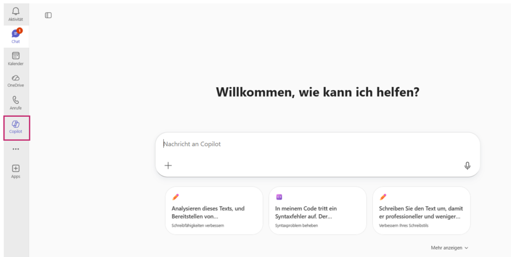 Der Copilot Chat steht Euch in unserer sicheren IT-Infrastruktur zur Verfügung – inklusive einer Websuche für aktuelle Daten und bequem nutzbar per Single Sign-on.